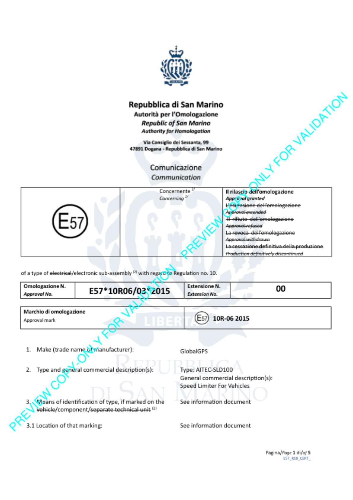 All devices comply with the technical requirements defined under **United Nations Economic Commission for Europe regulation UN Regulation No. 89 Speed Limitation Device Standard, the globally accepted standard governing speed limiter systems for heavy vehicles.